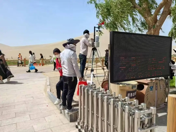 這個“五一”假期對于甘肅氣象部門來說意義非凡。敦煌鳴沙山景區(qū)意料之中的再次人山人海,而具有挑戰(zhàn)性的是5月3日傍晚,敦煌市經歷了一場部分地區(qū)最大風力達到12級的強沙塵暴,近萬名游客滯留在敦煌的景區(qū)。敦煌市相關部門充分利用陽光氣象的氣象監(jiān)測設備,根據天氣形勢順利完成近萬名旅客的轉運,氣象服務在其中發(fā)揮著怎樣的作用?讓我們一探究竟。