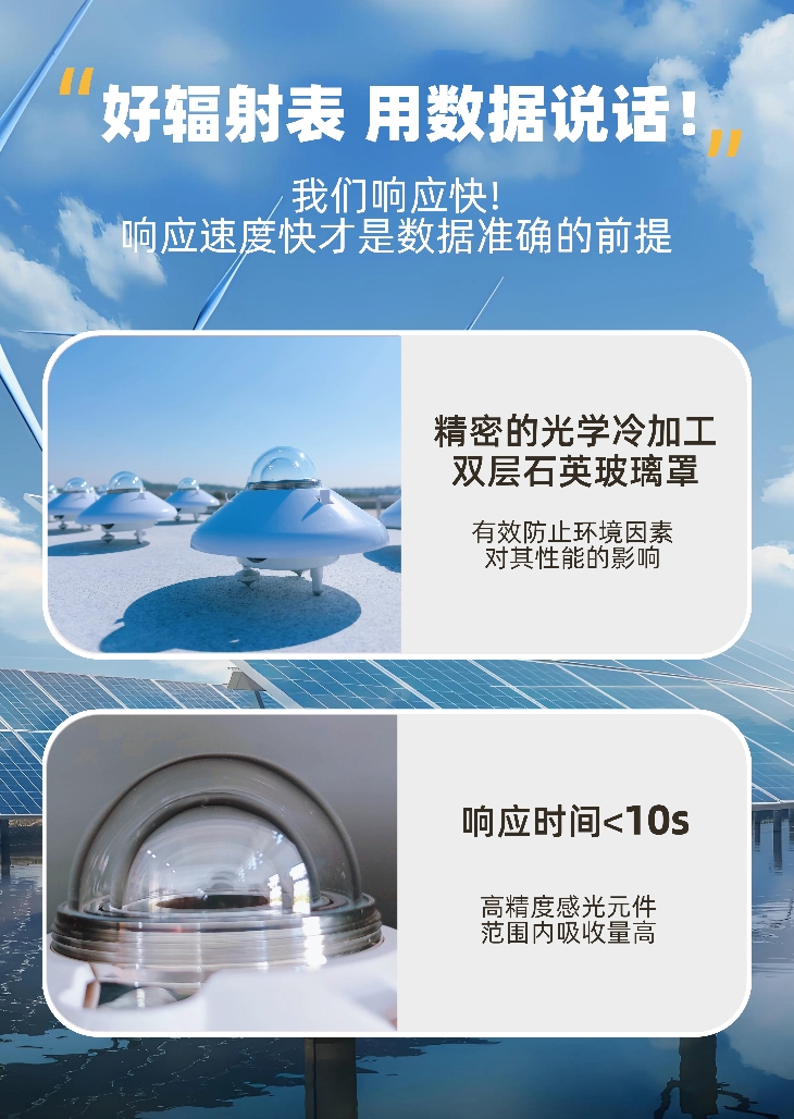 2、響應快:響應時間≤10S,對太陽輻射的微小變化都能迅速響應,確保數據的實時性和準確性。