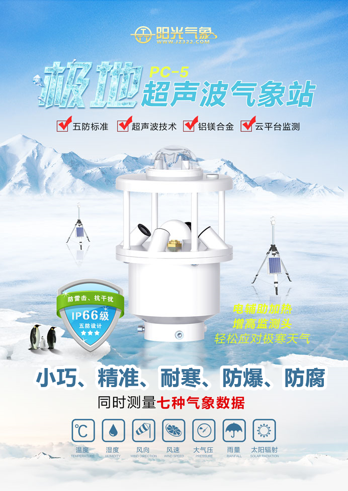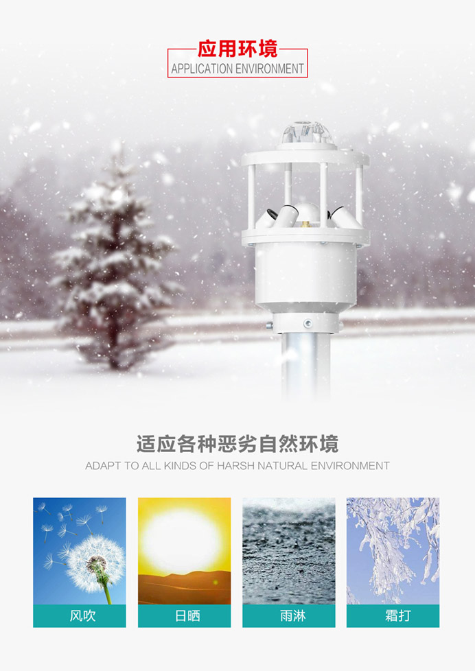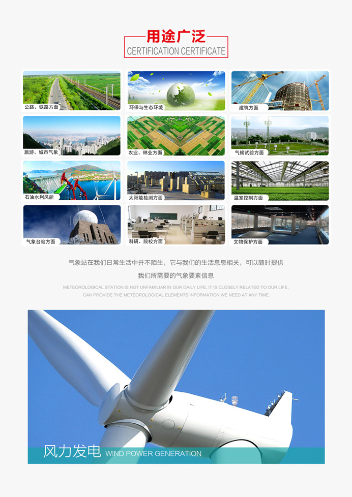 該氣象站采用超聲波探頭來測量風速和風向,沒有任何移動部件,儀器結構緊湊,更加耐用,數據更加可靠。也可用內置的溫度、濕度和氣壓傳感器等傳感器探頭監測相關氣候指標。精確的測量數據可以幫助氣象、水利、交通及科研等組織提供精確的數據依據及判斷條件。