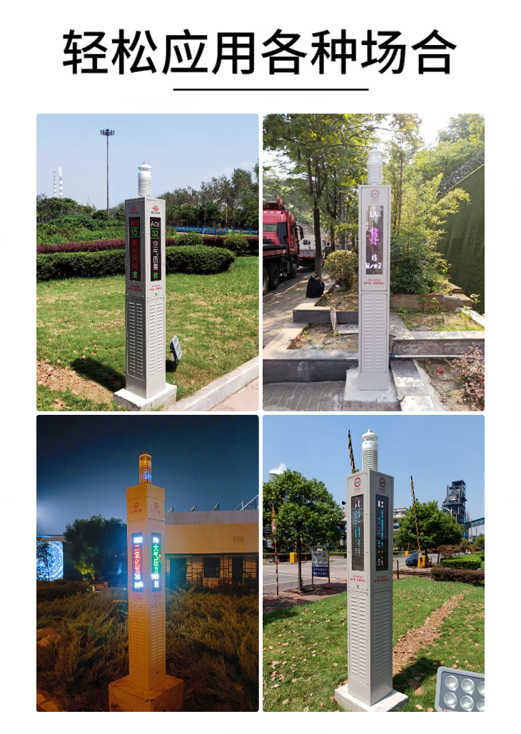 3.    本機自帶四面LED顯示屏,可實時顯示監測數據,也可遠程傳輸至其它大顯示屏;