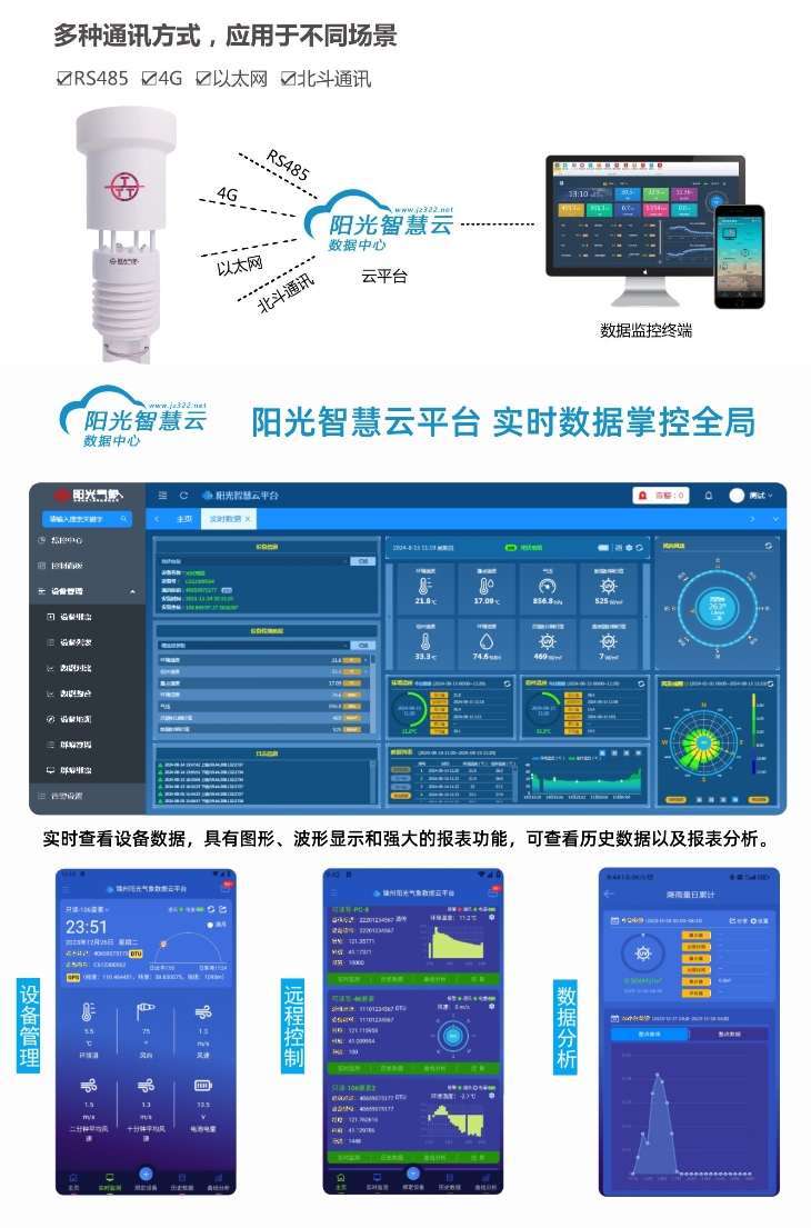 PC-8K氣象六參數(shù)環(huán)境監(jiān)測儀是我公司自主研制的一款測量多種氣象要素的專業(yè)級一體化氣象站,可同時測量大氣溫度、大氣濕度、風速、風向、氣壓、雨量等主要氣象要素。其中雨量為高精度翻斗式雨量傳感器,其特點是精度高,響應(yīng)速度快,串口輸出,方便用戶直接通過PC或外接儀器進行采集。