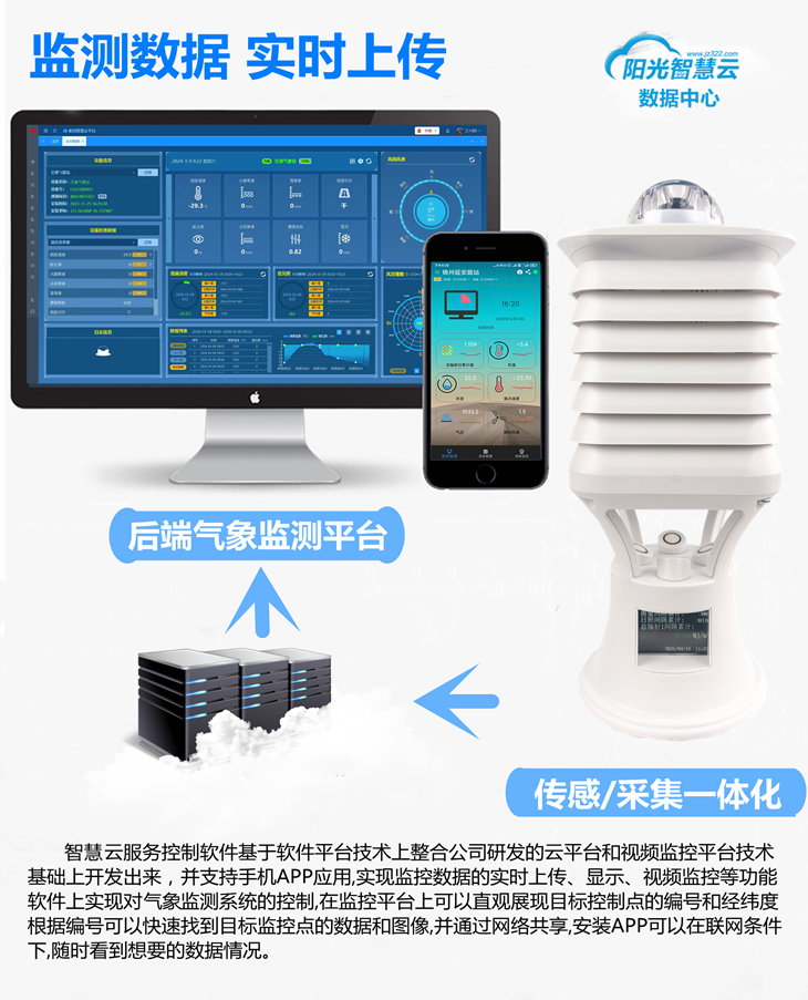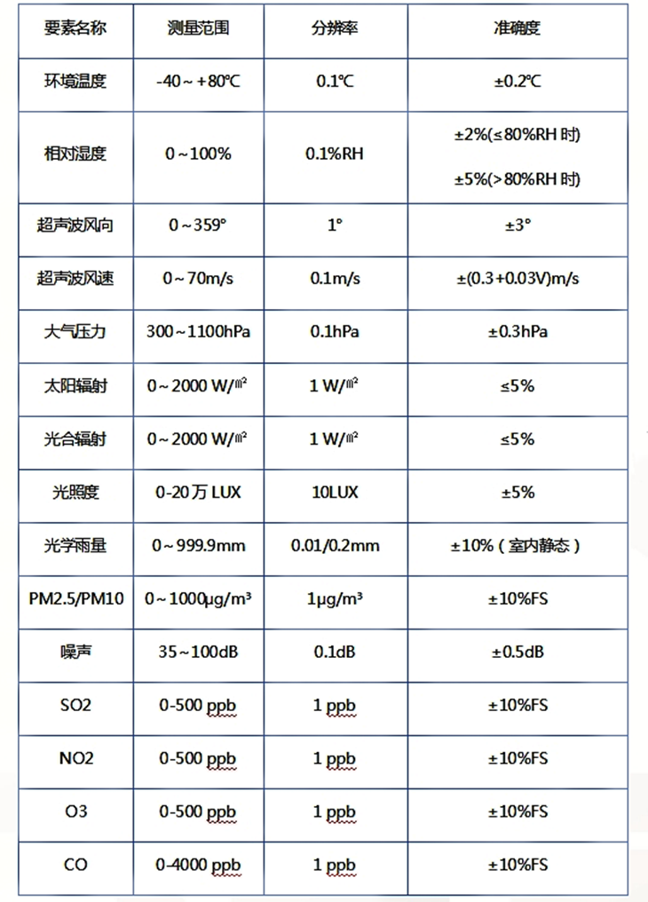 1. 一體化結(jié)構(gòu)設(shè)計(jì):采用一體化設(shè)計(jì),實(shí)現(xiàn)了太陽輻射、溫度度、風(fēng)速風(fēng)向、氣壓、降雨量、氣體、噪聲粉塵等多種要素同步監(jiān)測。同時(shí)設(shè)備支持定制,可根據(jù)需求增減監(jiān)測要素。