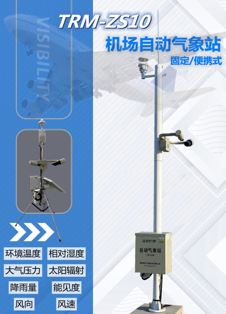 常規機場氣象站分為固定式和便攜式兩種觀測方式,固定式常選用分 體結構,立桿高度通常為 6-10 米;而便攜式常選用一體化結構,小巧重量輕便,隨測隨走,可快速部署到機場的不同領域,實現全方位無死角監測。